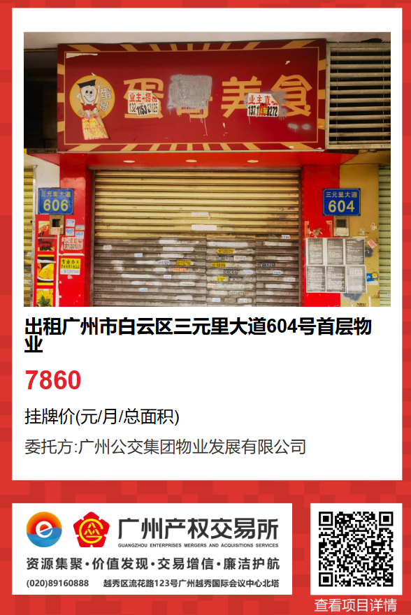 現(xiàn)有廣州市白云區(qū)三元里大道604號(hào)首層物業(yè)出租項(xiàng)目,該項(xiàng)目在廣州公有物業(yè)出租平臺(tái)網(wǎng)站自掛牌公開(kāi)招租,歡迎有意向的企業(yè)法人或自然人(含個(gè)體工商戶)參加應(yīng)租。現(xiàn)將有關(guān)事項(xiàng)說(shuō)明如下: