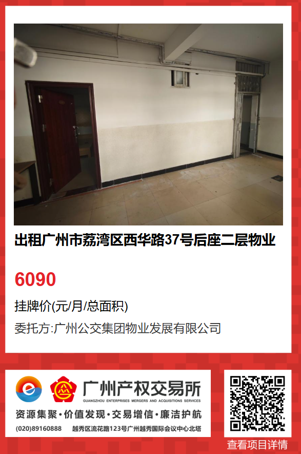 現有廣州市荔灣區西華路37號后座二層物業出租項目,該項目在廣州公有物業出租平臺網站自掛牌公開招租,歡迎有意向的企業法人或自然人(含個體工商戶)參加應租?,F將有關事項說明如下: