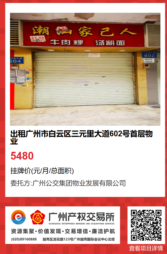 現有廣州市白云區三元里大道602號首層物業出租項目,該項目在廣州公有物業出租平臺網站自掛牌公開招租,歡迎有意向的企業法人或自然人(含個體工商戶)參加應租。現將有關事項說明如下: